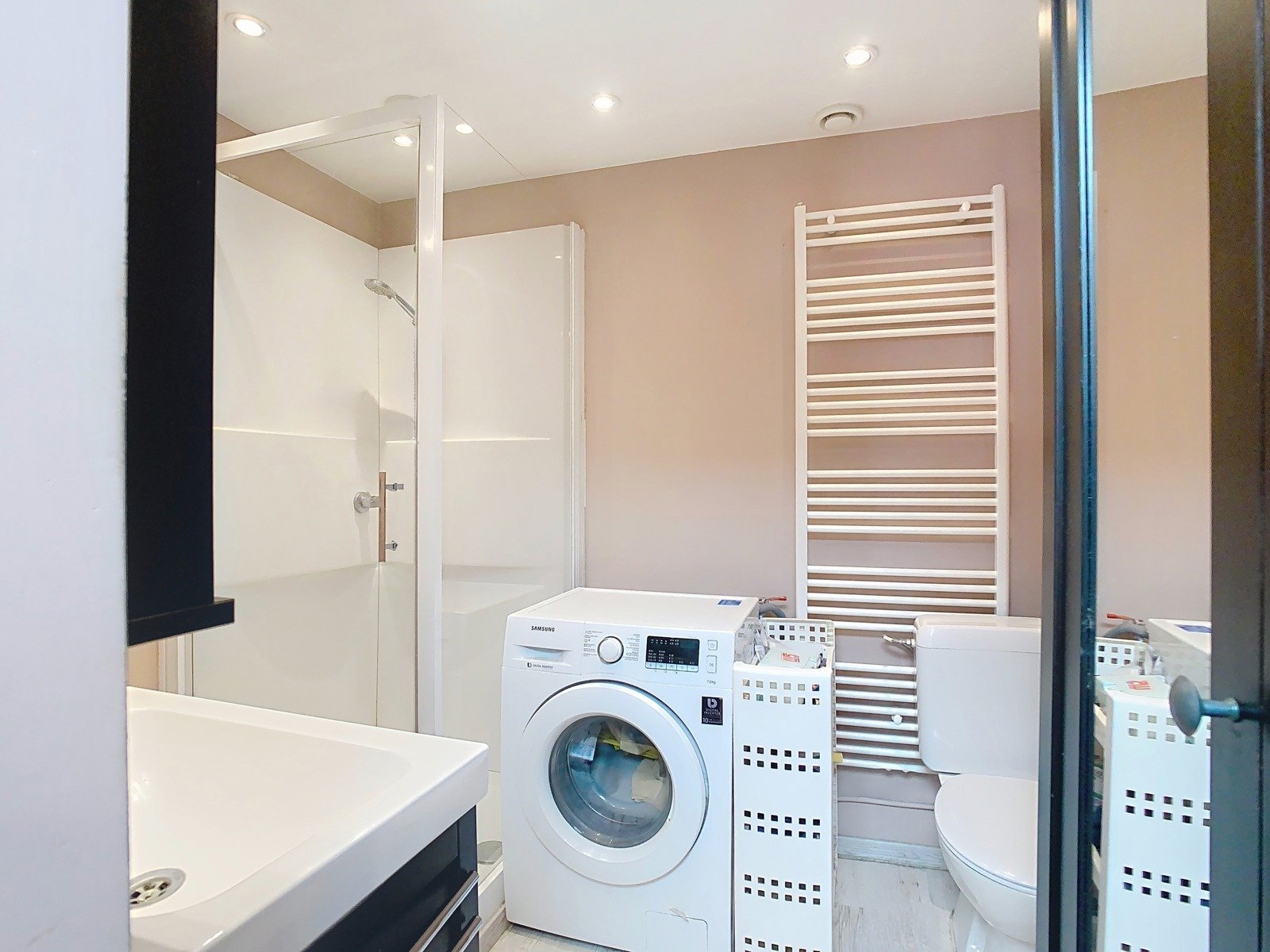 Het gelijkvloers verwelkomt je met een ruime en lichtrijke leefruimte, die naadloos overloopt in een volledig geïnstalleerde keuken. Dankzij de lichtstraat baadt deze leefruimte in natuurlijk zonlicht – een echte troef! Achteraan bevindt zich de badkamer, uitgerust met een douche, dubbele lavabo en toilet. Via de keuken heb je toegang tot een gezellige koer met daarboven een dakterras – de ideale plek om tot rust te komen in het hart van de stad.