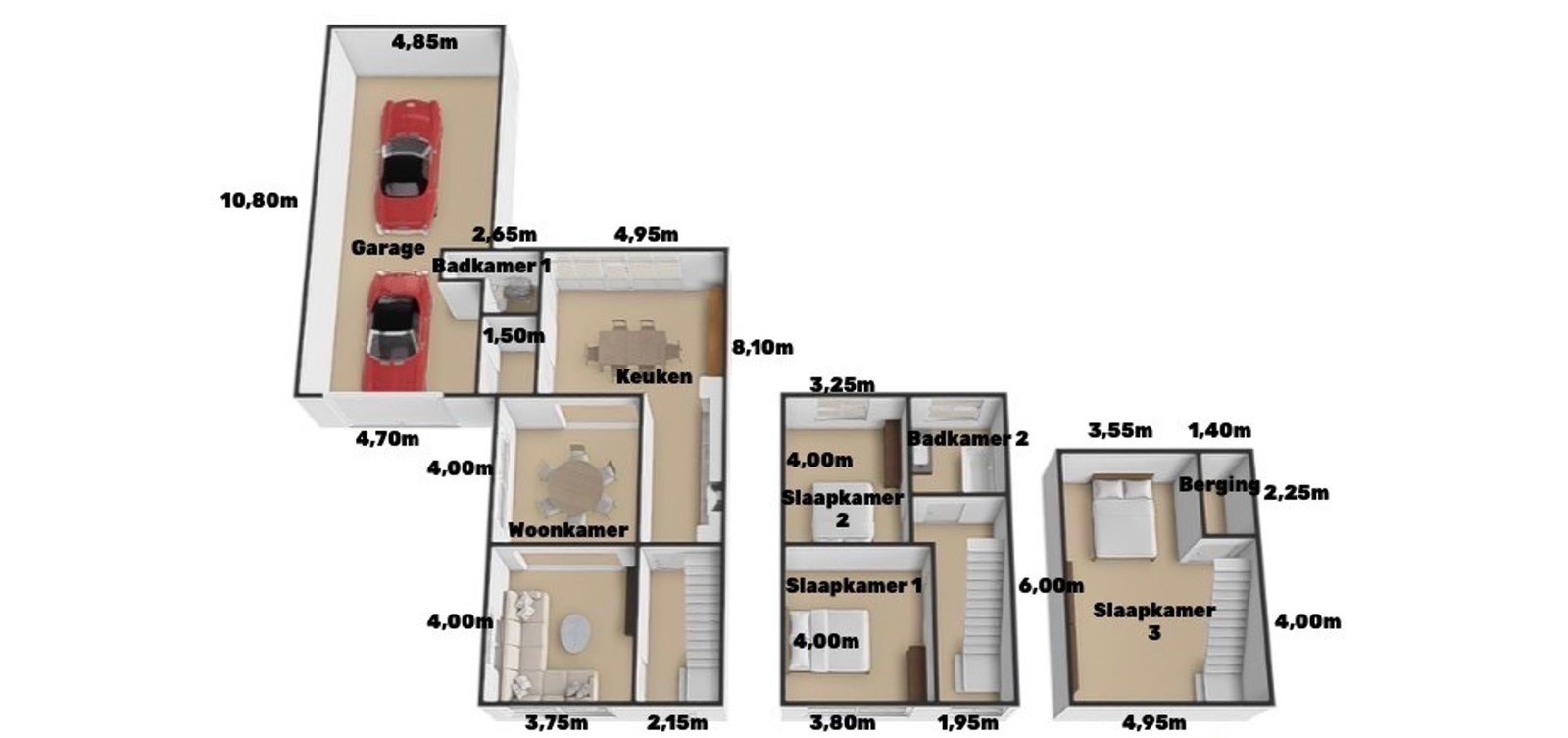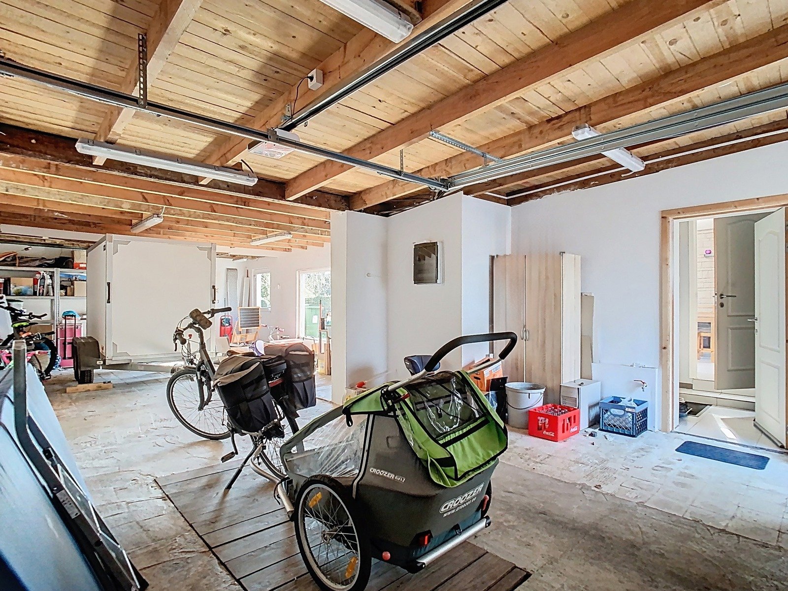 We sluiten het gelijkvloers af met een ruime garage met extra bergruimte, die toegang biedt tot zowel het terras als de tuin. Door de zij-ingang naast de woning is de garage ook gemakkelijk bereikbaar van buitenaf, wat bijzonder praktisch is.