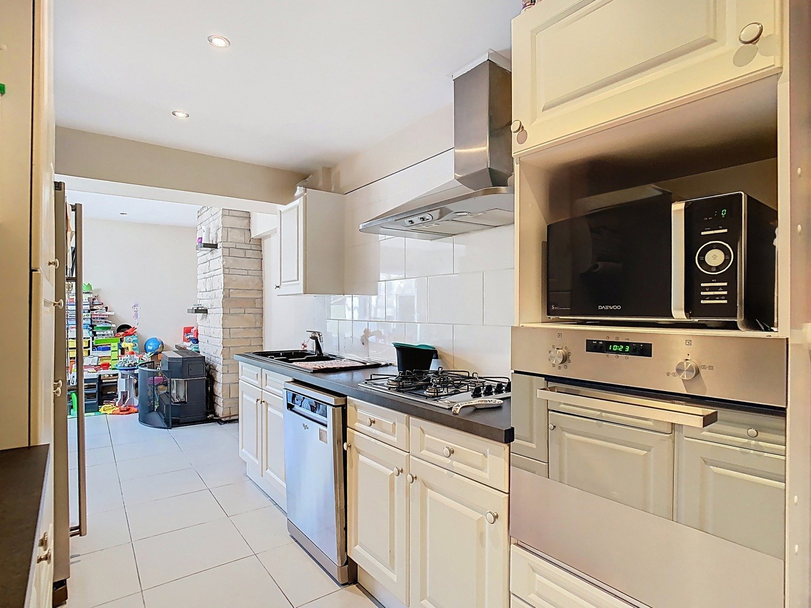 De keuken heeft ook toegang tot een nette kelder die ruime opbergruimte biedt. Daarnaast is er van hieruit een handige doorgang naar de inkomhal, wat zorgt voor extra comfort en praktische indeling.