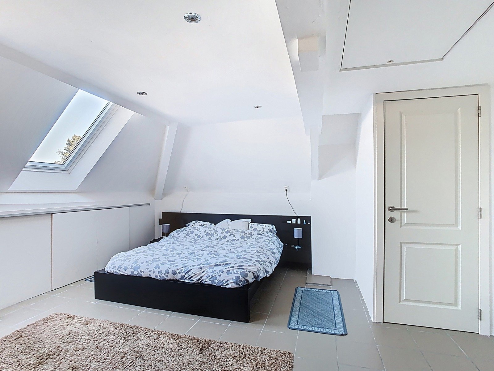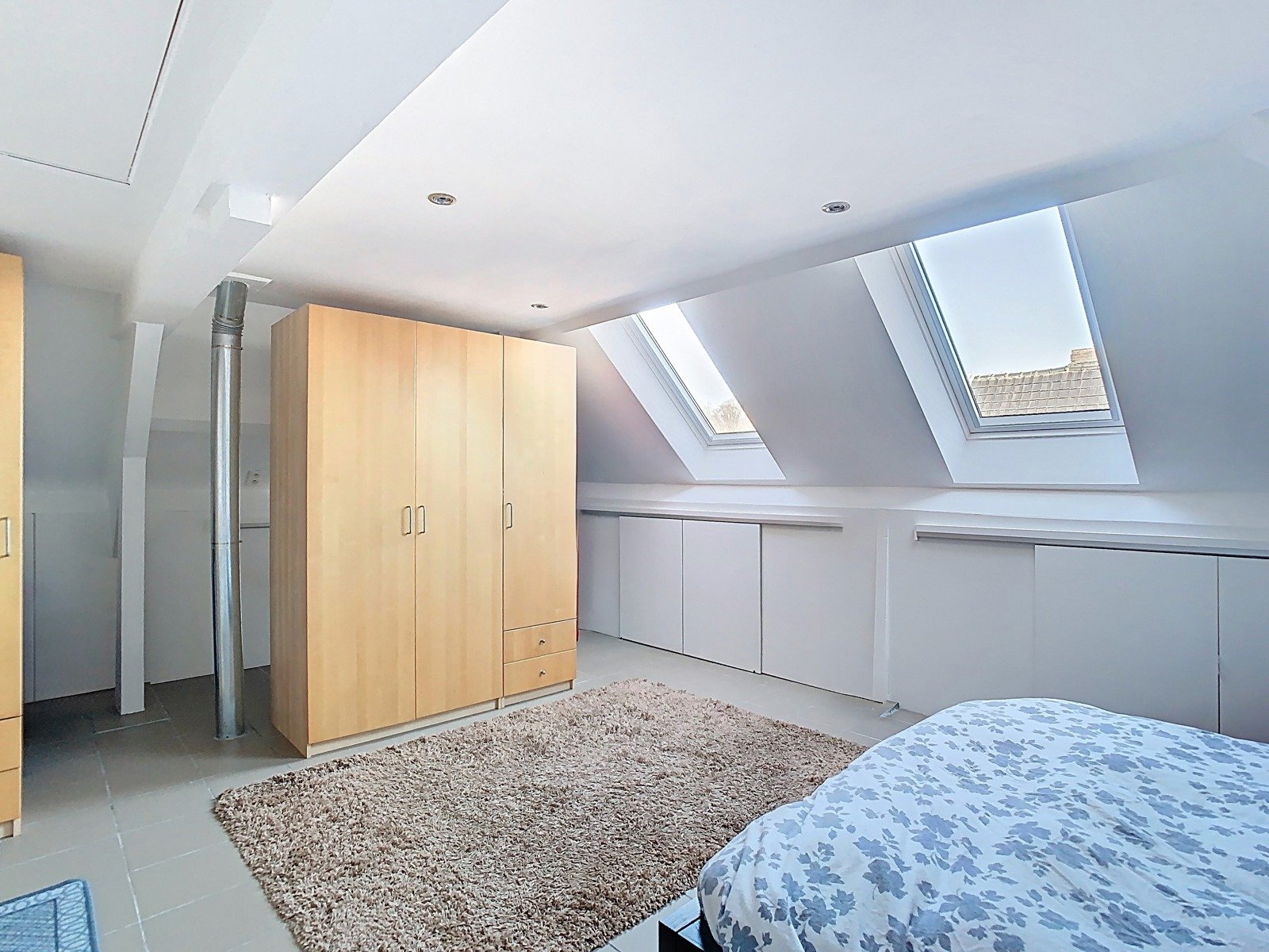 De eerste verdieping herbergt twee mooie kamers en een tweede badkamer, uitgerust met een lavabo, ligbad en toilet. De zolderverdieping, bereikbaar via een vaste trap, is volledig ingericht als master bedroom en beschikt over veel praktische ingemaakte kasten. Een extra afgesloten bergruimte maakt het geheel hier compleet, ideaal voor extra opslag.