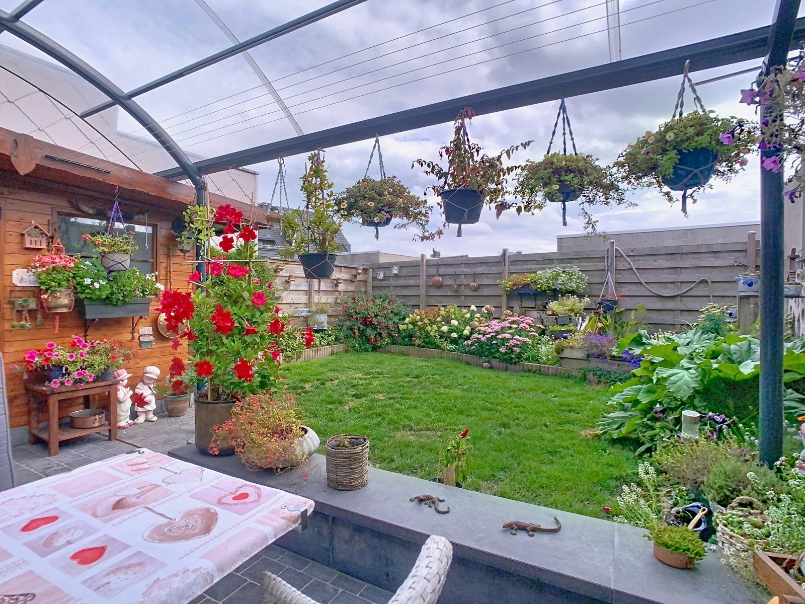 Buiten geniet je van een volledig afgesloten en onderhoudsvriendelijke stadstuin met een gezellig tuinhuis. Een heerlijke plek om te ontspannen of te tuinieren.