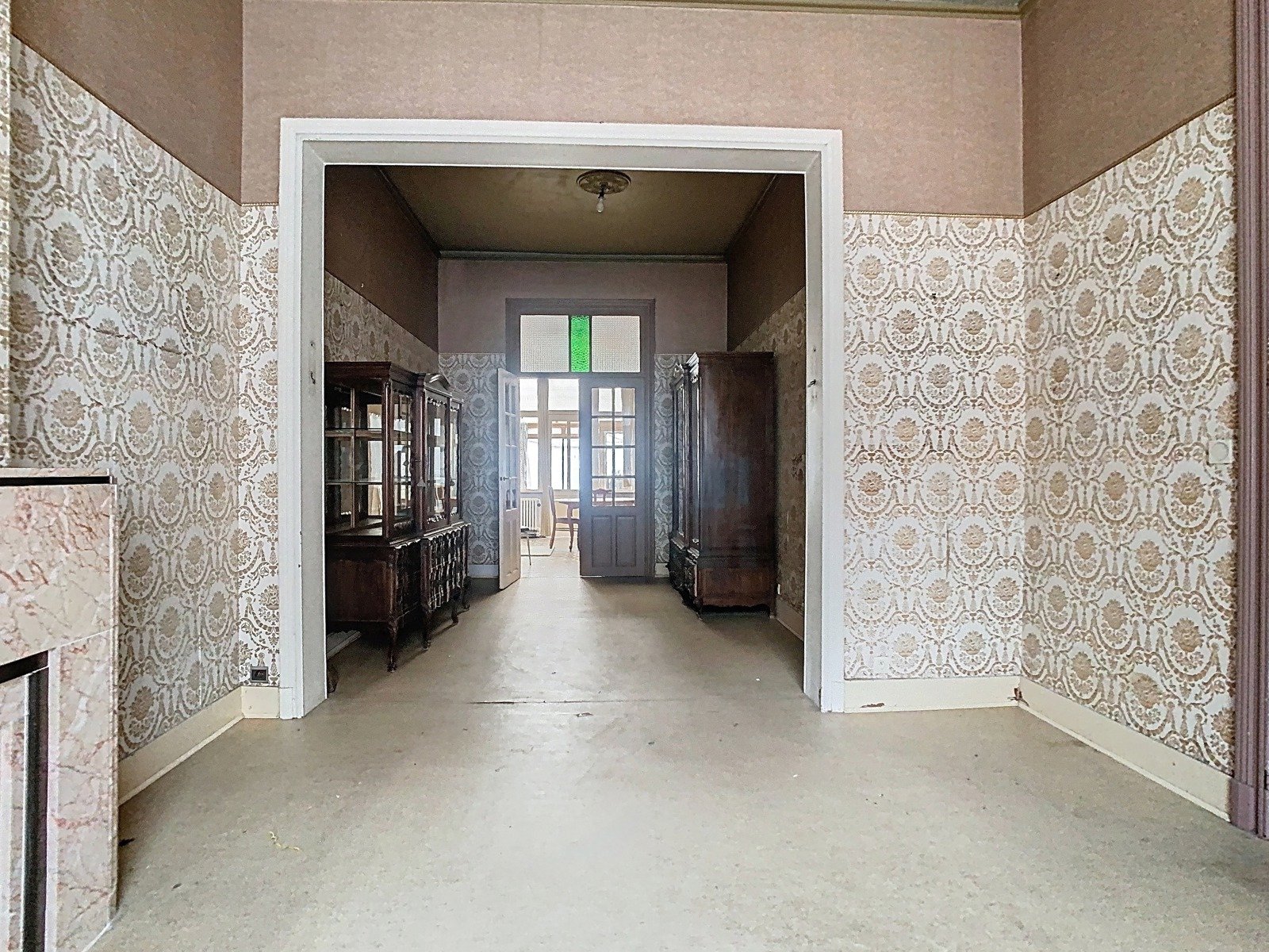 Bij het betreden van de woning valt meteen de indrukwekkende inkomhal op, met een prachtige houten deur en originele elementen die de toon zetten voor de rest van het huis. De royale leefruimte baadt in het licht dankzij de grote raampartijen en hoge plafonds, en sluit via een authentieke glazen deur aan op een tweede, lichtrijke leefruimte. Deze biedt een prachtig zicht op het achterliggende terras en de volledig omheinde stadstuin – een oase van rust in het hart van de stad.
